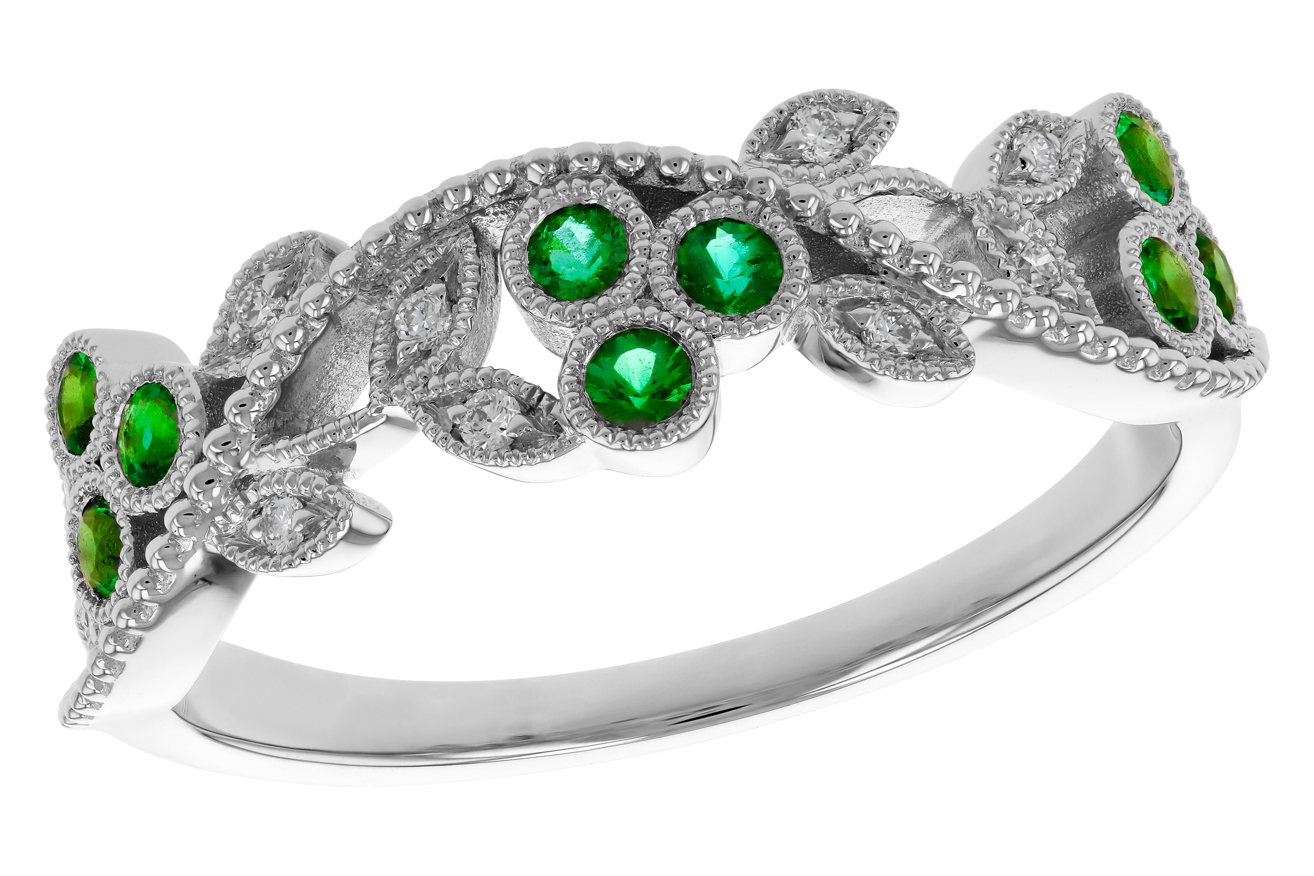 D283-90643: LDS WED RG .17 EMERALD TW .23 TGW
